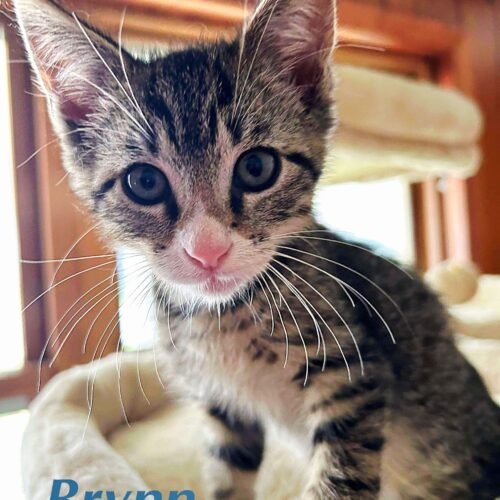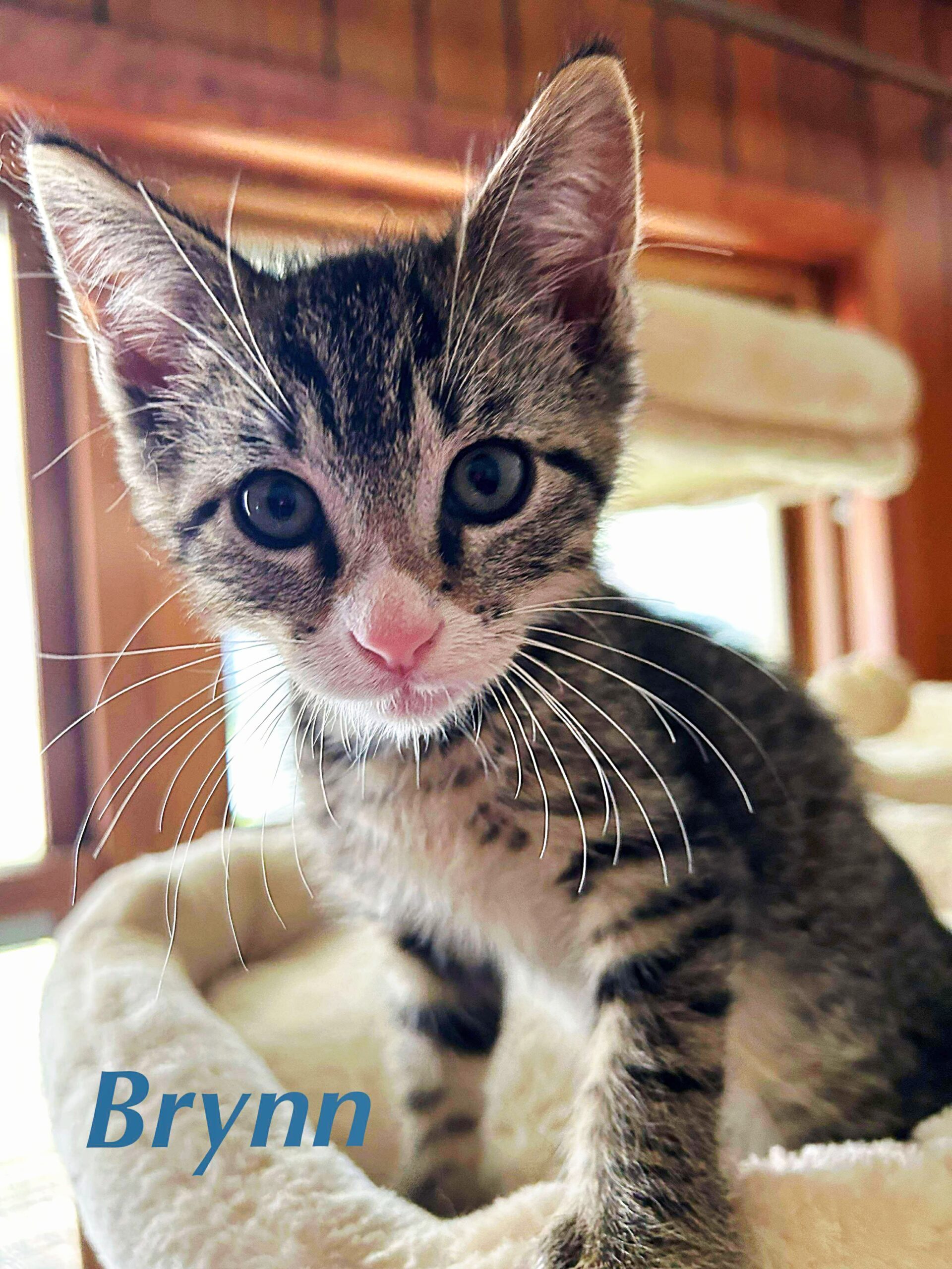My name is Brynn and I am an adorable tabby boy with white paws! I am very sweet and friendly!
