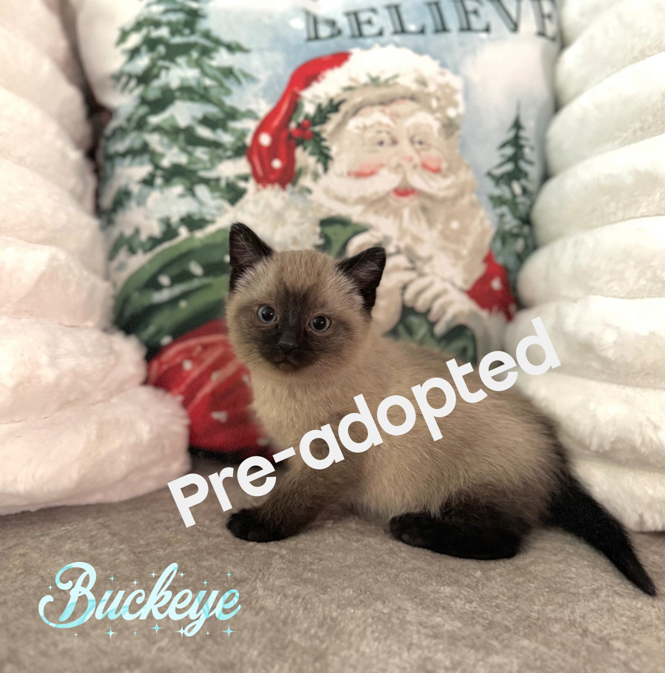 My name is Buckeye and I am a super friendly and sweet Siamese mixed boy! I have an adorable little black nose. I absolutely love people and will cuddle in your lap!