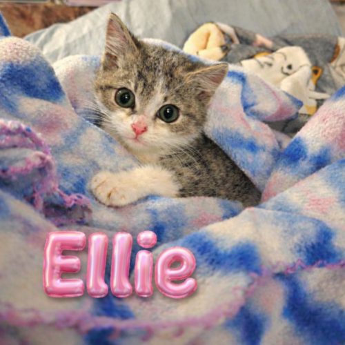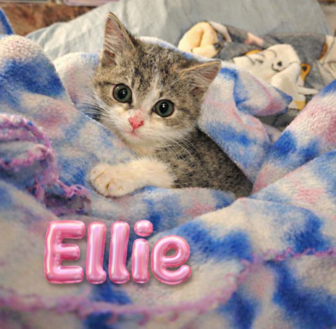 My name is Ellie and I am the most adorable little grey and white tabby girl! I am very playful and sweet!