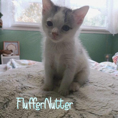 My name is FlufferNutter and I am the most adorable little grey and white boy! I am VERY social and friendly! I love people!