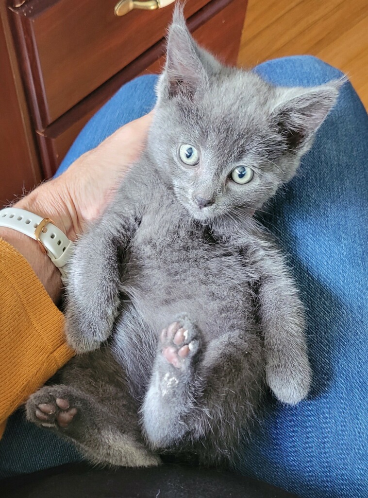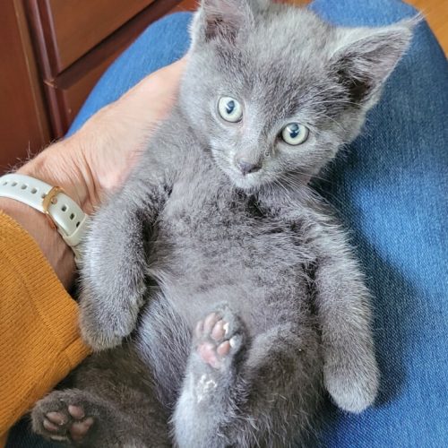 My name is Franklin and I am the most adorable little grey boy! I love to cuddle on your lap! I am super playful and sweet