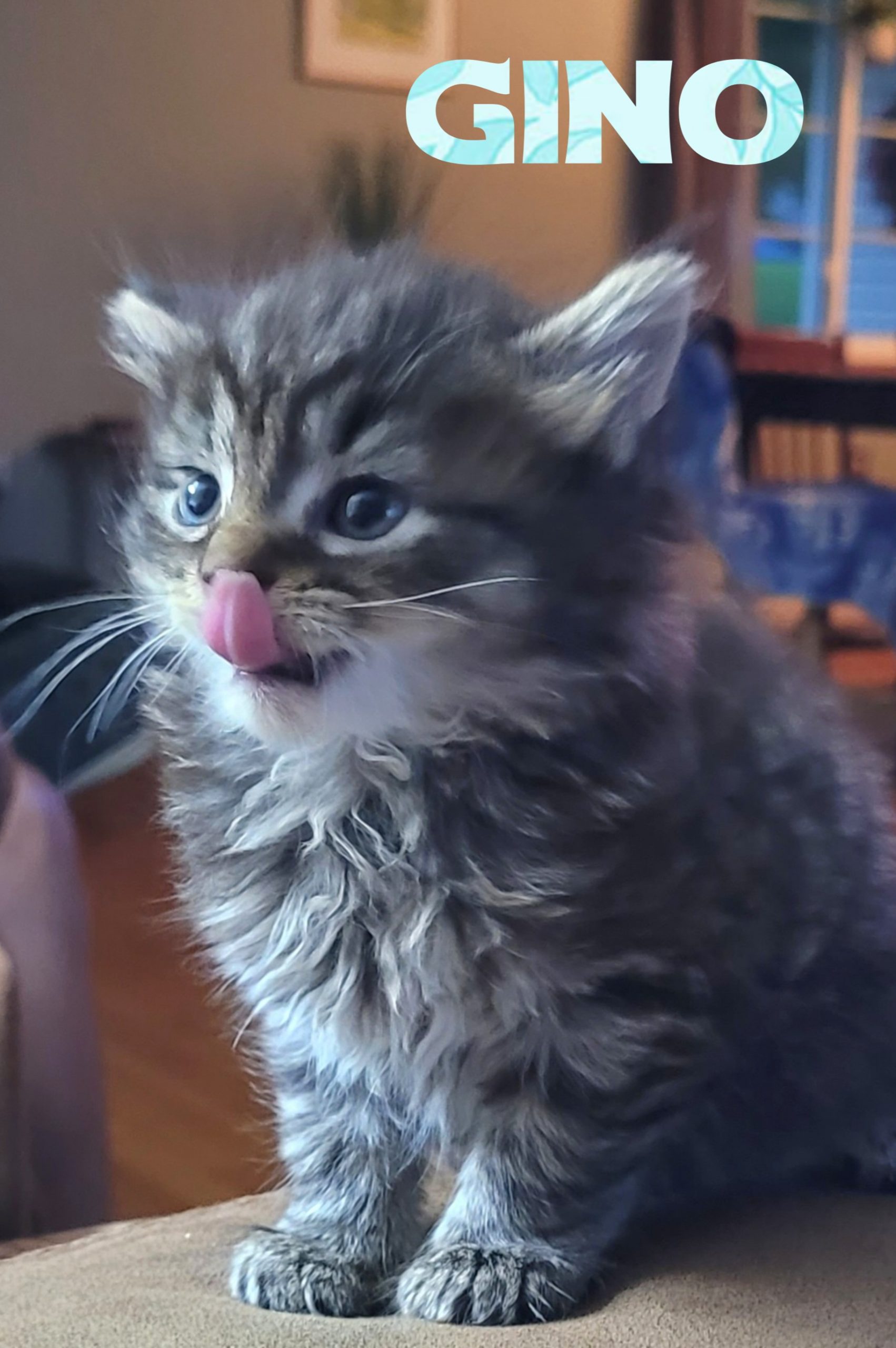 My name is Gino and I am the absolutely sweetest, friendliest little long haired tabby boy!i am VERY social! I love people!