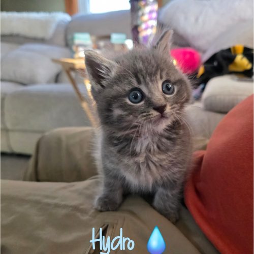My name is Hydro and I am the most social and friendly little grey tabby boy! I absolutely love people and am SOOO spunky and energetic!
