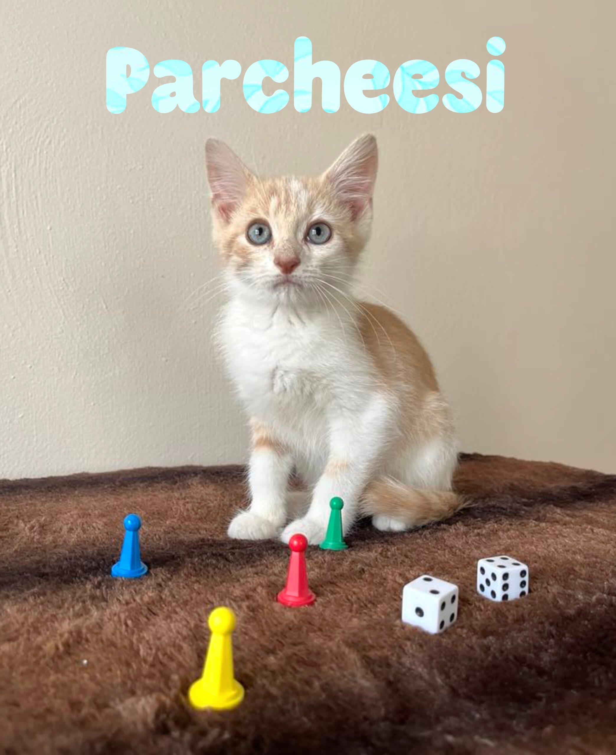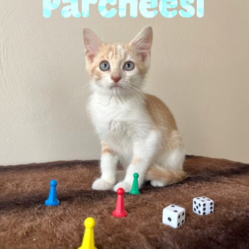 Hi my name is Parcheesi and I am the sweetest orange and white colored boy you will ever meet! I am social and very playful and I LOVE people!