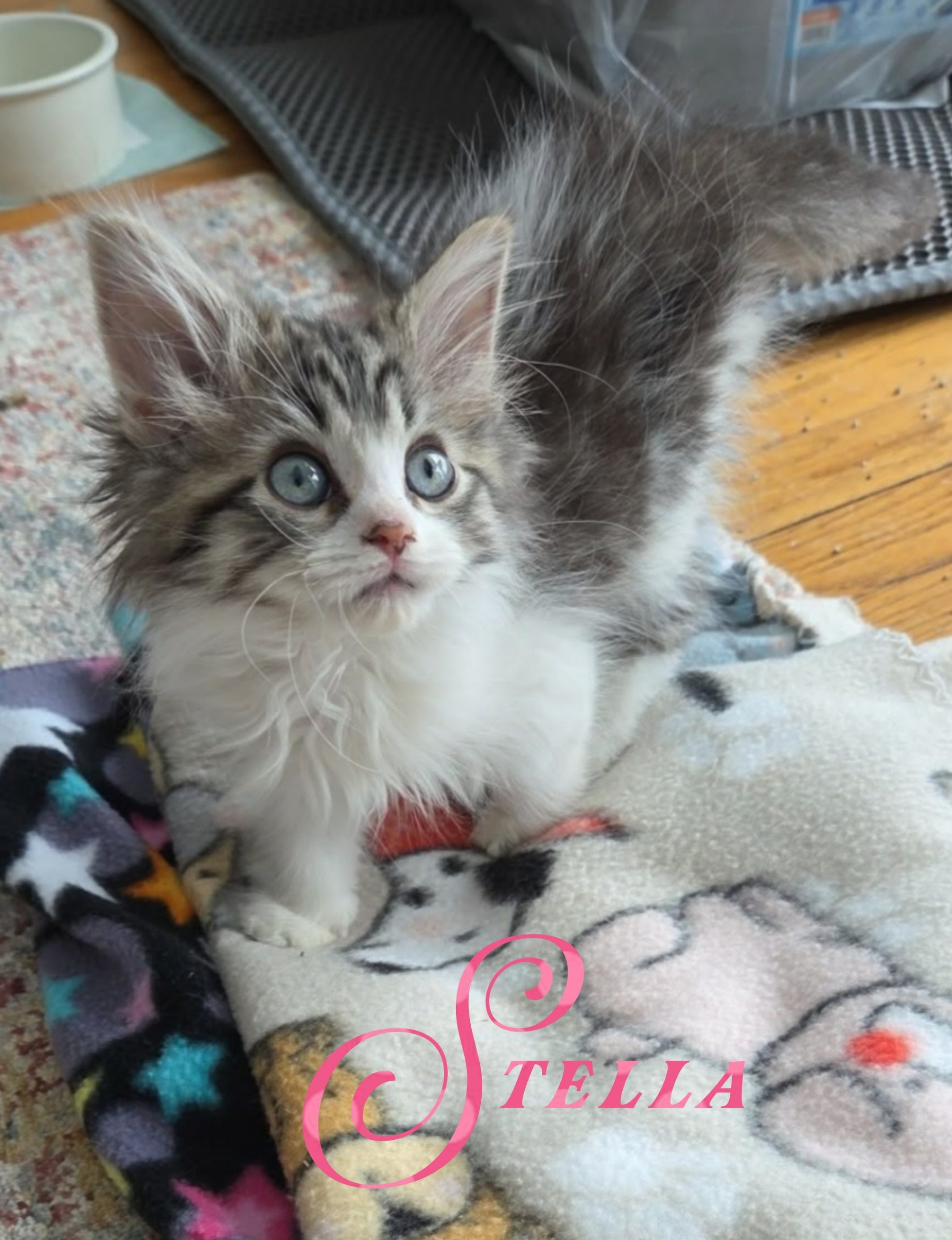 My name is Stella and I am a gorgeous long-haired grey and white girl! I am extremely friendly and social!