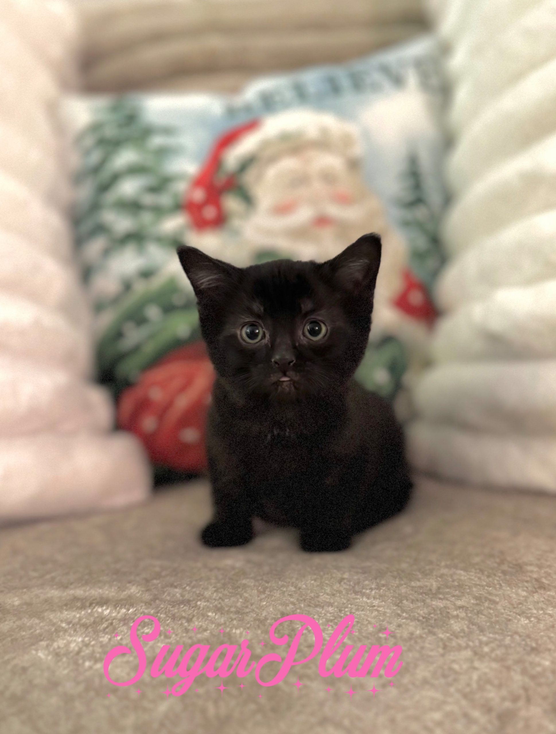 My name is SugarPlum and I am a super friendly and sweet black girl! I have an adorable little black nose. I absolutely love people and will cuddle in your lap!