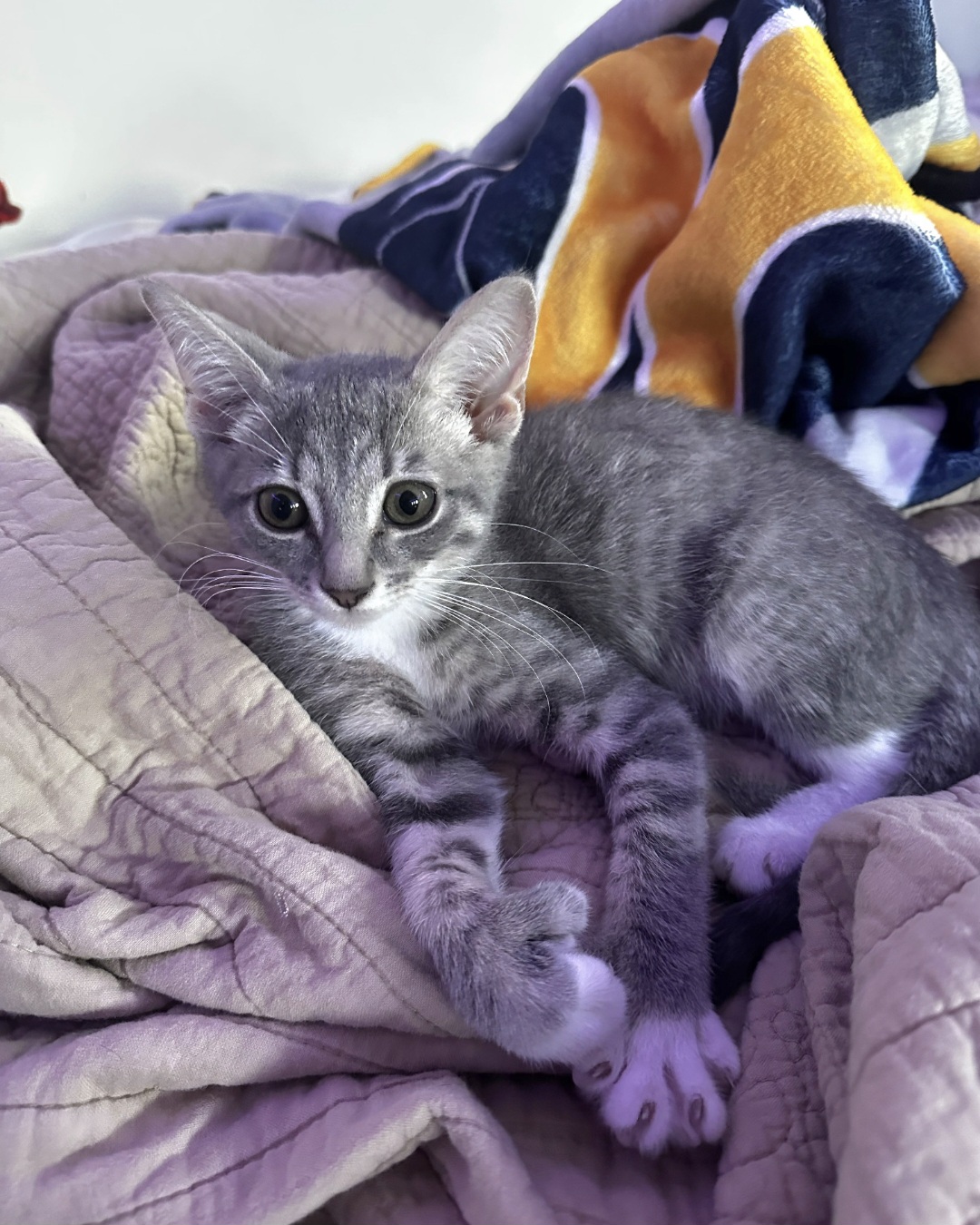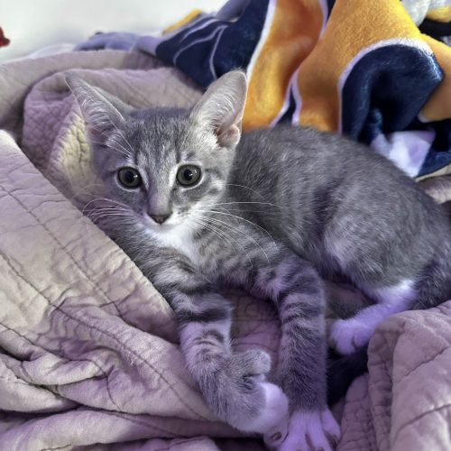 My name is Thumbelina and I am the cutest little grey and white polydactyl girl! I have thumbs! I am very friendly and social